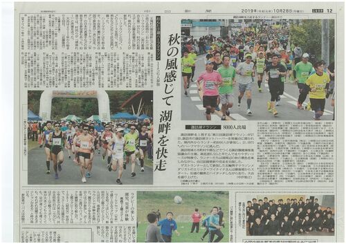 10/27の第9回おんたけ湖ハーフマラソンの新聞記事を掲載します。 中日新聞10/28付 市民タイムス10/28付